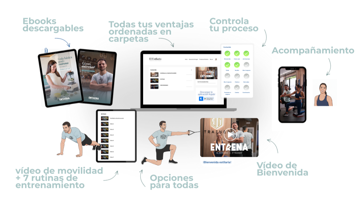 8 vídeos + un ebook de explicaciones técnicas de Javier Trabajo + un ebook de recetas post entreno de Isabel Raya. Los mejores profesionales en su especialidad. Tú solo busca el momento. Del éxito nos encargamos nosotros.